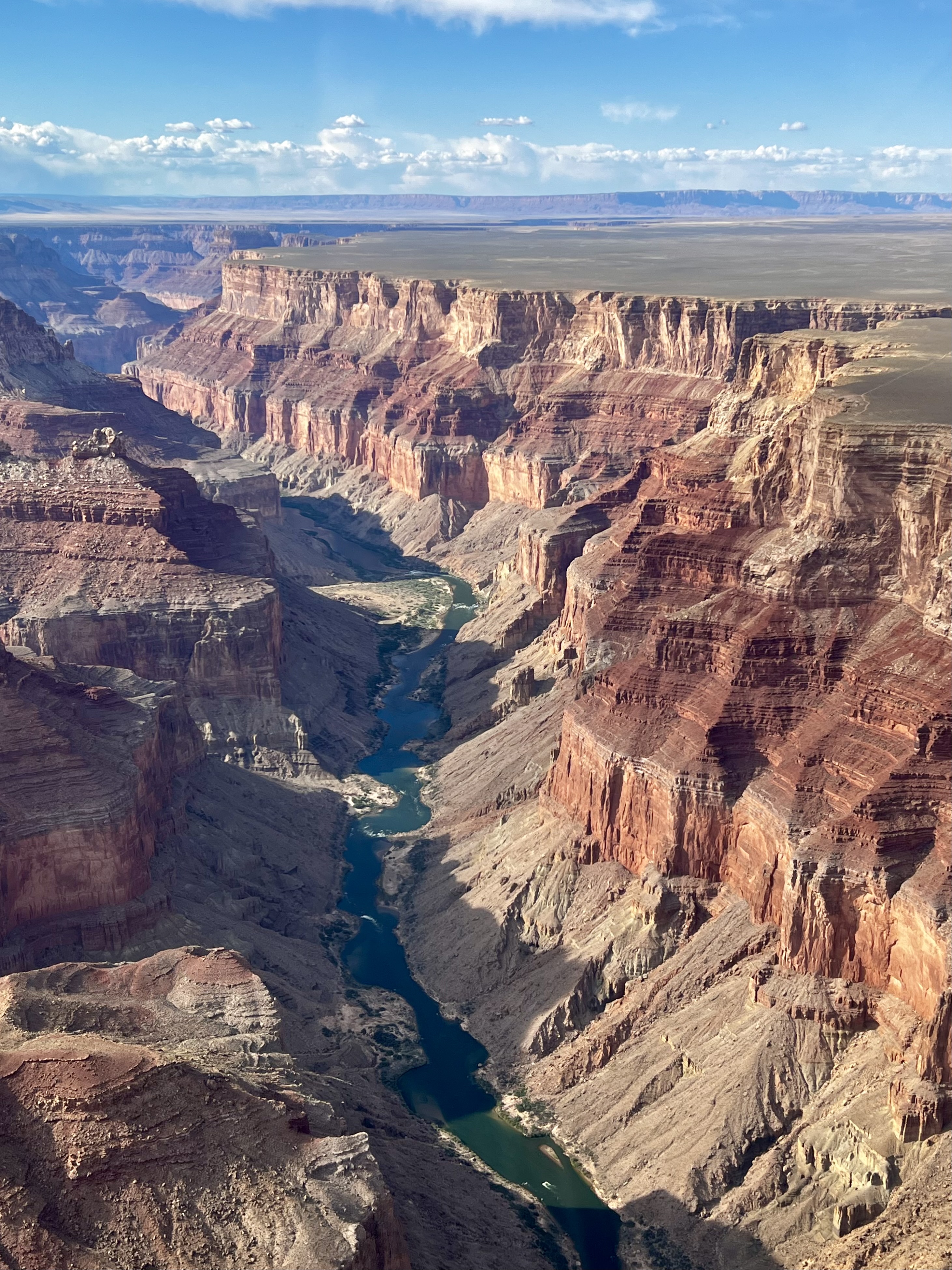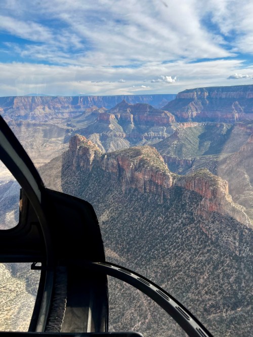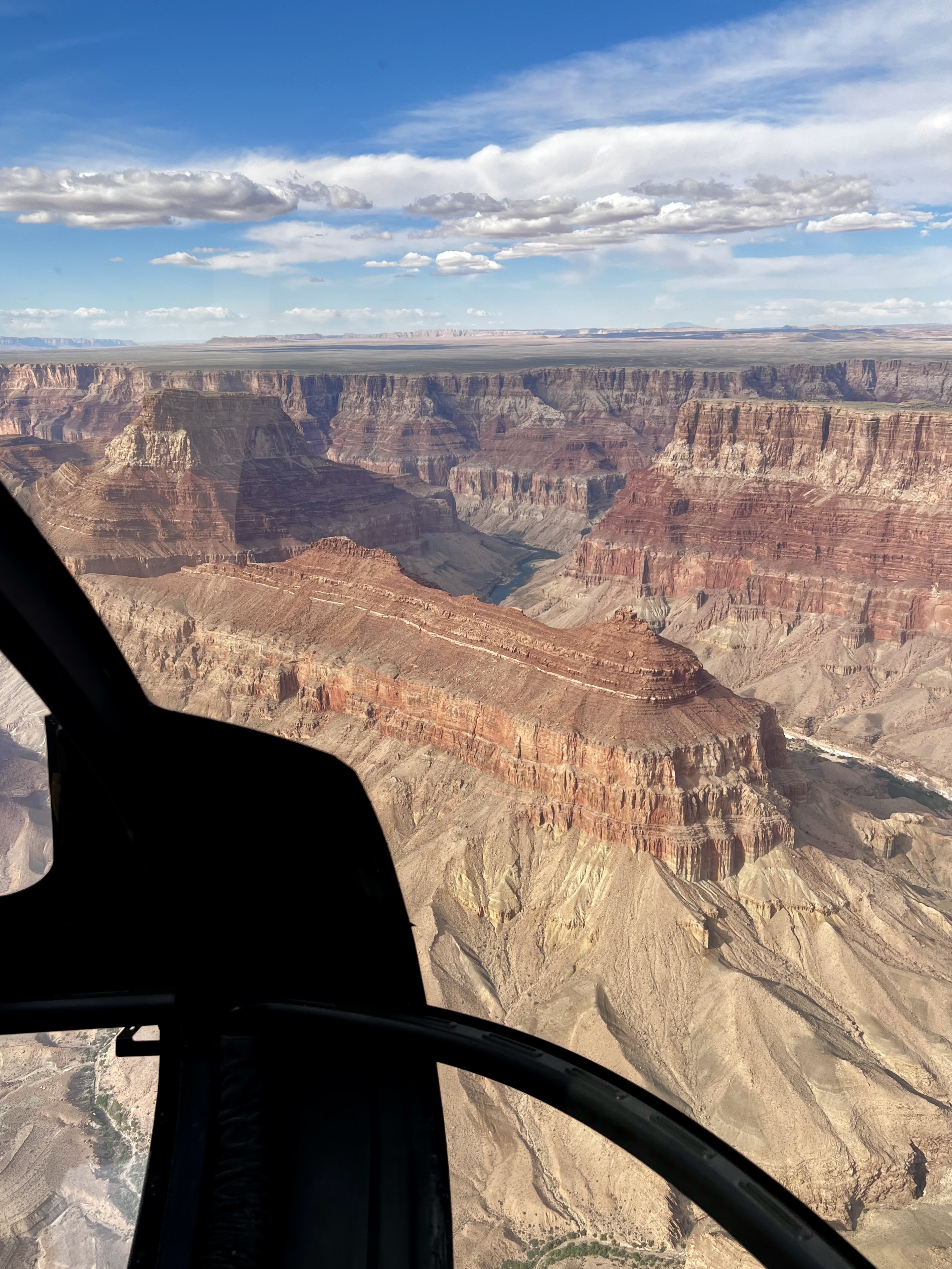 We left off at Mesa Verde, a national park unlike any other that I’m so glad I made time for. My next activity was the only one with a proper deadline: a helicopter flight over the Grand Canyon with a 4pm takeoff that I absolutely could not miss. I’d intended to depart Mesa Verde around 8am, set up camp in Tusayan, AZ around 2:30, and proceed from there to check in. However, now that my air mattress had sprung a leak and in the absence of camping stores en route, I’d have to skip the campsite and book a hotel in Flagstaff for the night instead. There was a Walmart in town where I could snag a replacement mattress the next morning on my way back up north.