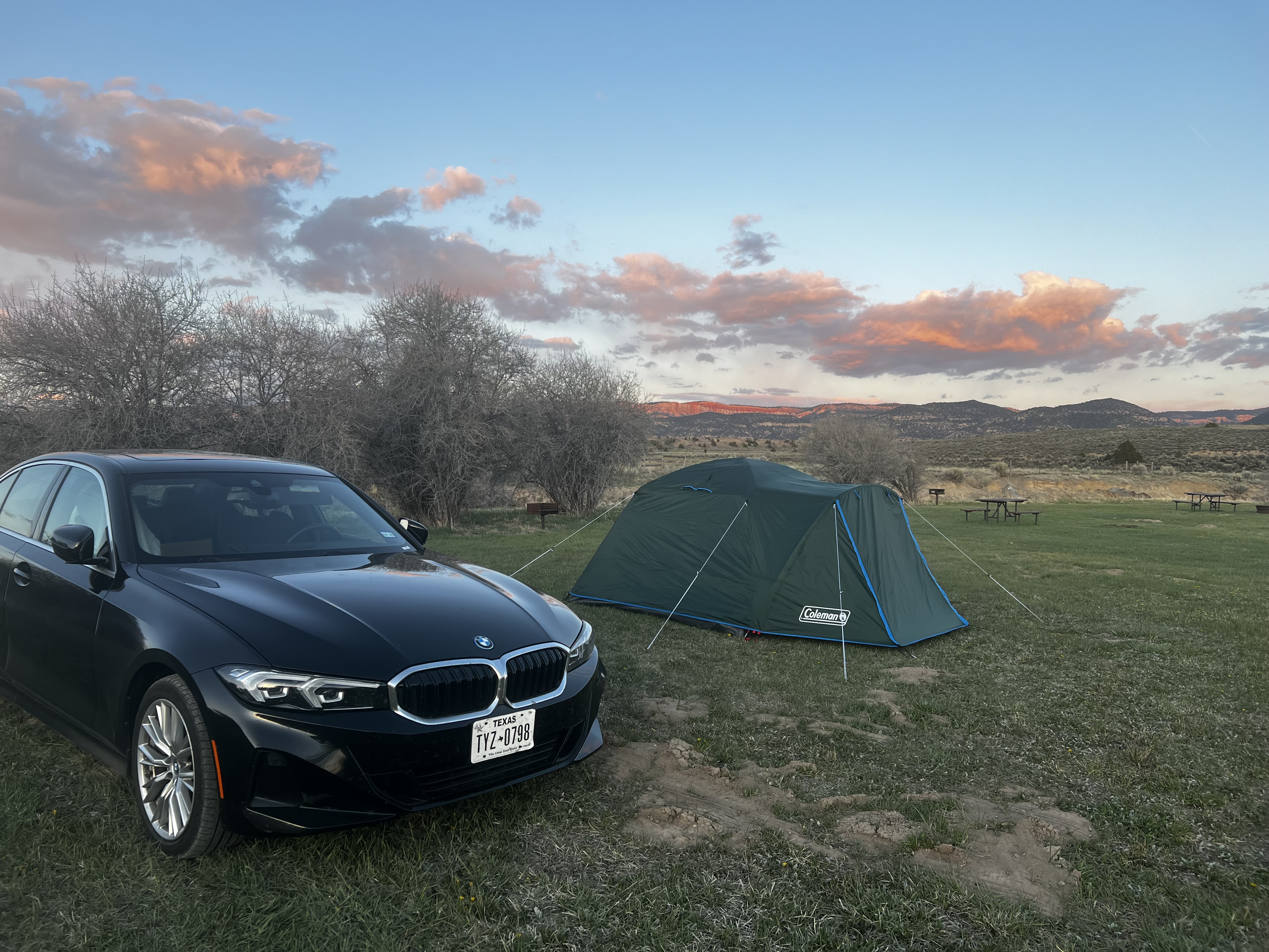 I’d planned to camp at Zion Canyon Ranch that night, but plans changed again. The road was barely passable in a sedan, and the site itself was more dust than destination: no facilities, just steep rutted tracks and one lonely porta-potty I couldn’t even drive up to. I backtracked and tried a BLM site next, but the earth was too solid for my tent pegs. Ultimately, I ended up at a roadside Econolodge in Hurricane, Utah. Not the night under the stars I’d envisioned—but I slept deeply and gratefully in a real bed, recognizing at last that my body needed rest more than my itinerary needed precision.