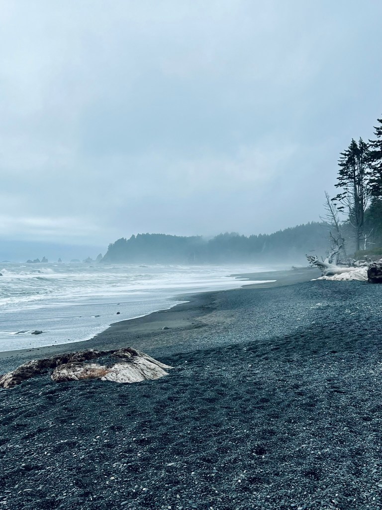 We left off at Olympic National Park in Washington, where the Sol Duc Falls trail transported me back to my childhood ‘Harry Potter Walks’ with my family in Puck’s Glen, Scotland. But, much as I enjoyed that particular trek, for me Olympic’s best feature was its sheer variety. Later that same day, whose color palette had so far exuded nothing but green, I found myself trekking along a blustery coast draped instead in every shade of blue and gray known to man.