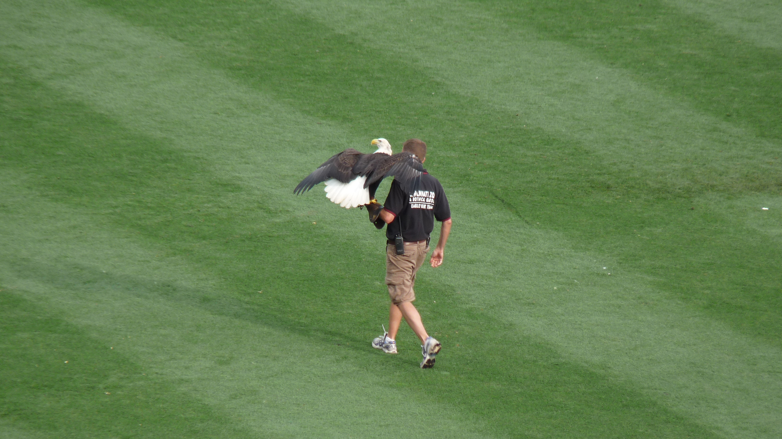 Once the national anthem has been performed, they have a bald eagle fly onto the field, for obvious reasons.