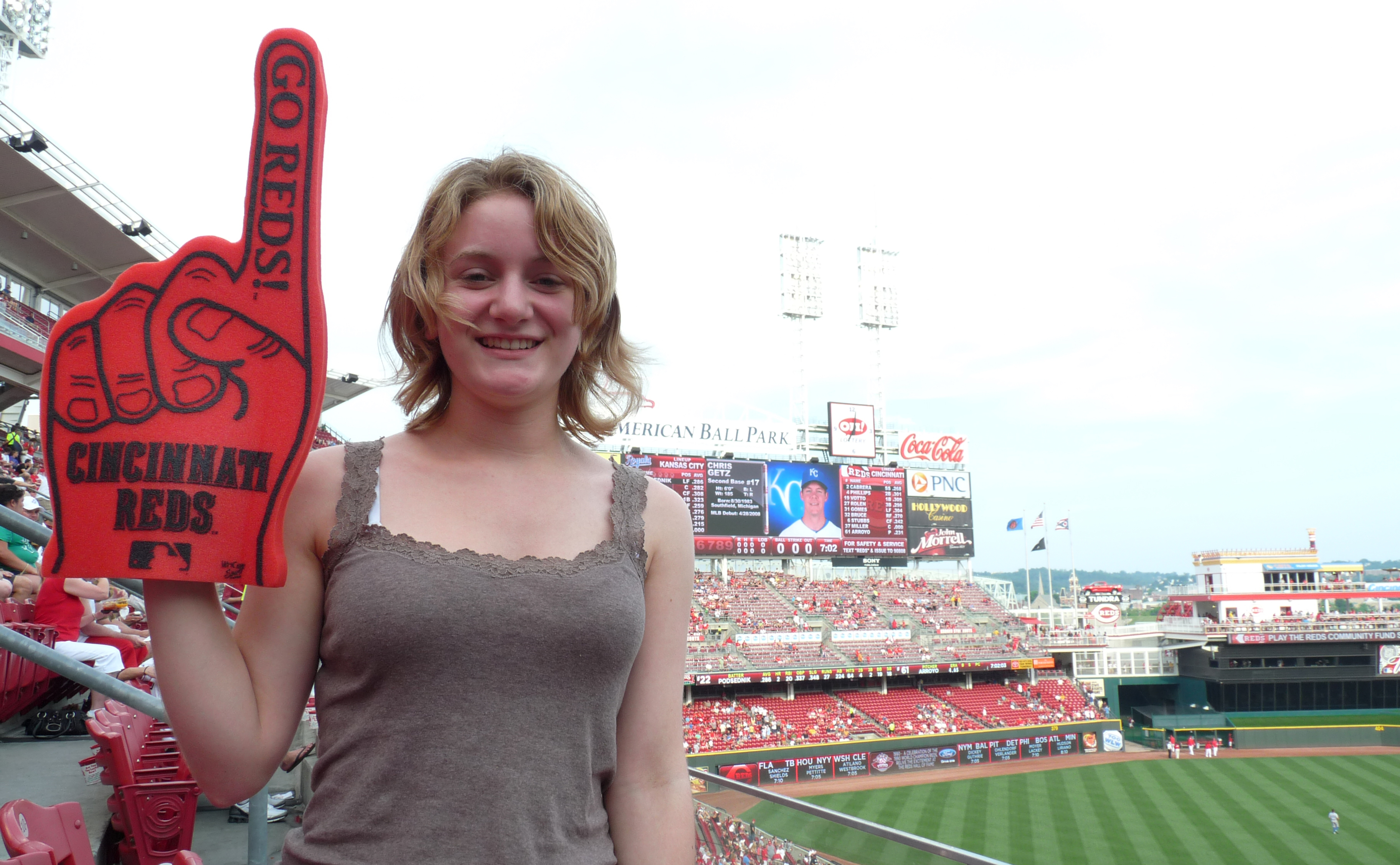 I’ve also had the opportunity to visit several more of Zanesville’s gems. On Thursday we took a trip out to the steamboat Lorena, and the famous Y-bridge – I’m sure you’ll have heard of it so I’ll say no more. It was just after this that we hit the road and headed in the direction of Cincinnati to stay at Ted’s place the night before our Reds game. Ted cooked for us – portobello mushroom burgers with avocado and feta, and some sweet potato fries. It was divine. So that evening we just hung around with Ted and his roommates, got some margaritas (thankfully I wasn’t asked for ID!) and admired the view from Ted’s deck, complete with fireworks from the Great American Ballpark (the Reds’ stadium).