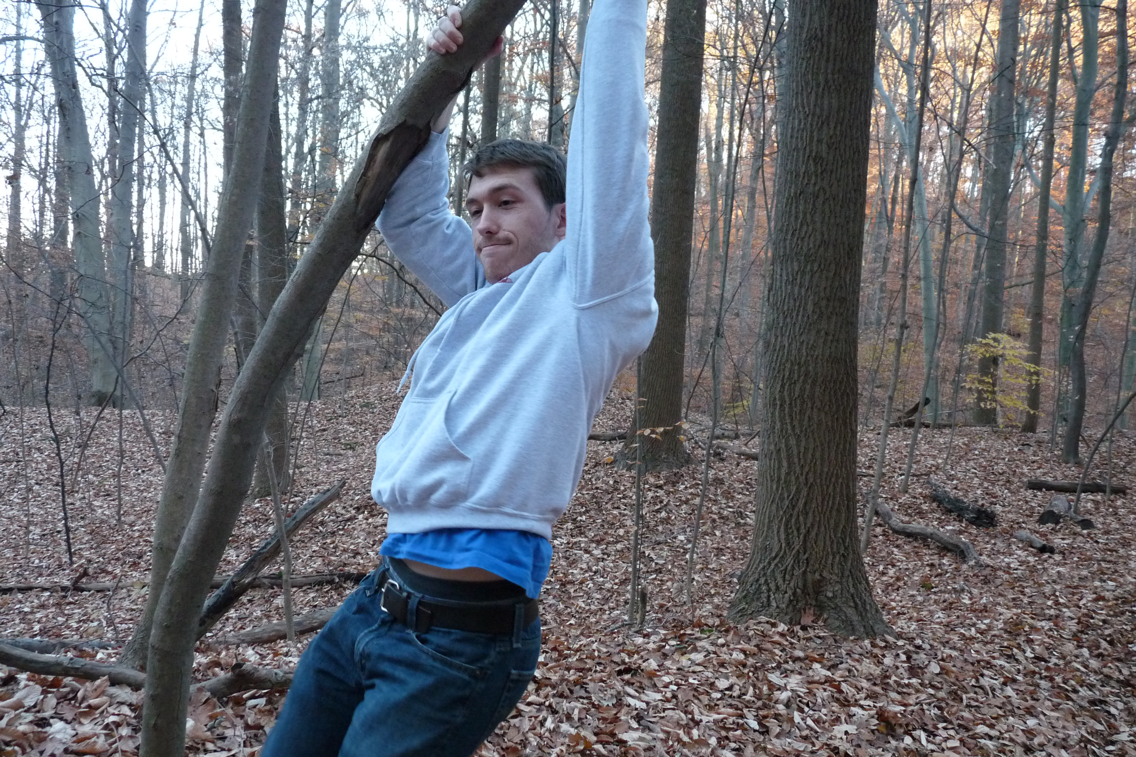 The next day was Thursday, and after class we headed out to spend some times in the Great Outdoors. There is a walking route up near Merriman which we decided to check out. We encountered many great adventures, including a small stream with stepping stones, and a tree. TUP! We did have a lot of fun though, frolicking in the woodlands and generally being goofy. After all, it is what we do best.