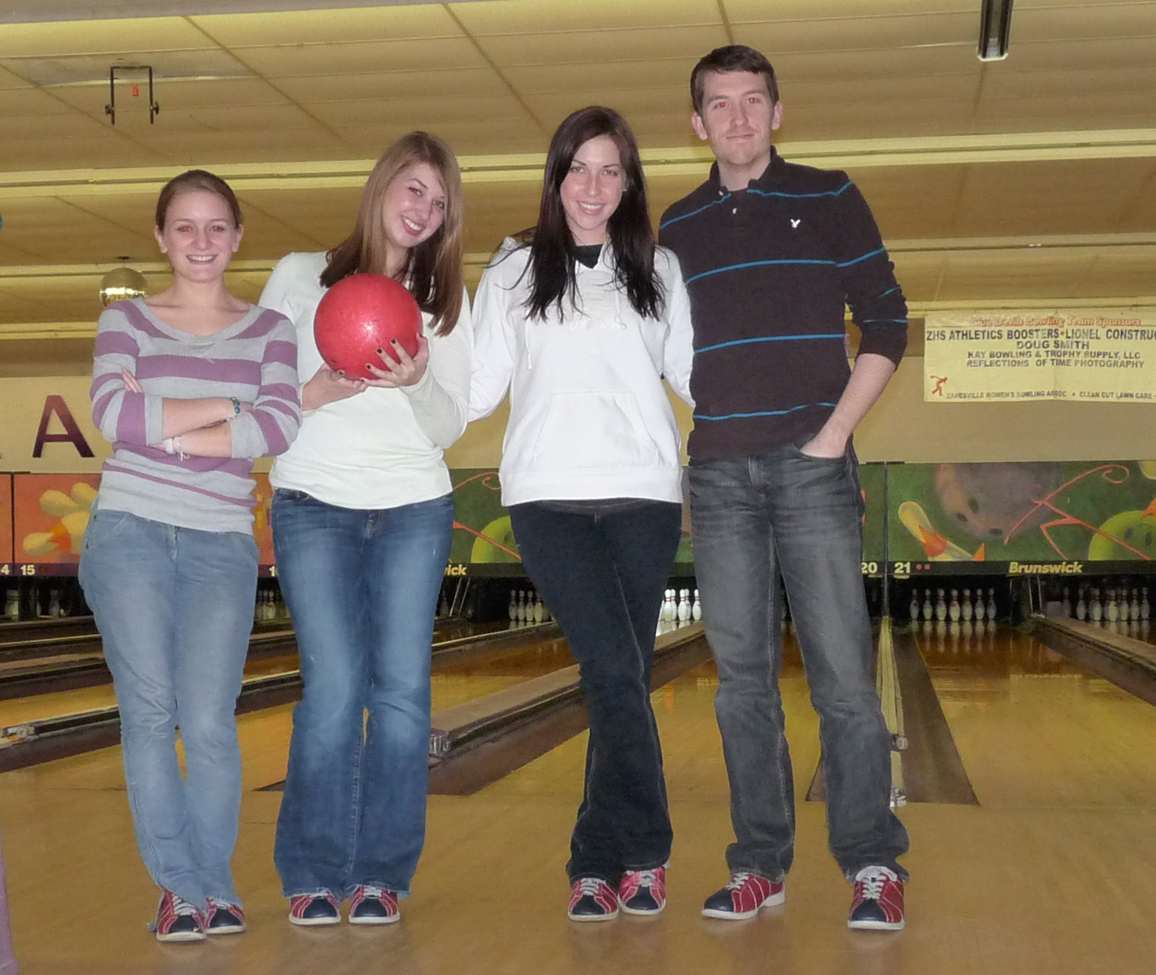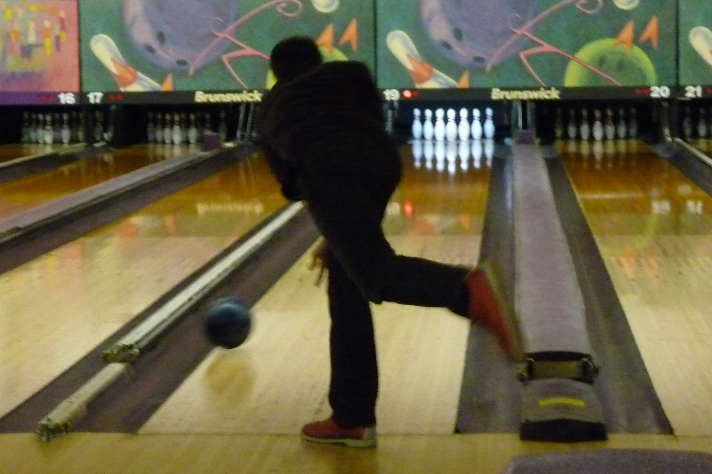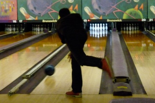 After dinner Grant and his sisters and I ventured forth into South Zanesville for a spot of bowling. It was a blast of a night – making fun of the somewhat sketchy venue, and location, and clientele, and uniting in horror when Amanda bowled before the bar was up, only to see it raise at literally the very last second so the ball could go sliding under, like some sort of Indiana Jones in reverse. My my, I do have Indiana Jones on the brain, don’t I? Anyway, my game was all over the place – the fickleness of my bowling skill never ceases to amaze me. I think I bowled a triple strike at one point (either that or a strike-strike-spare) – but then the others got jealous of my skillz and started sabotaging my game with bird noises. To be fair, it caught on pretty fast and soon we were all cawing away in the middle of the bowling alley – I’m sure some of the questionable patrons were questioning us at that point, but for some reason it was beyond hilarious at the time. Anyway, the upshot of it was that I lost my lead by bowling like, twelve gutter balls, and Kara wound up beating me by a couple of points. I’m still not over it.