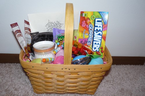 Not as usual, however, when we reached the car there was a gorgeous Easter basket waiting for me! Grant had borrowed a Longaberger basket from his mum and enlisted her help in wrapping it up once he had filled it full of colourful goodies such as bracelets, sweets, a tiny purse and a divine mocha-scented candle-in-a-teacup which I like to light when I eat smelly food in my room. It is now well and truly spent : (