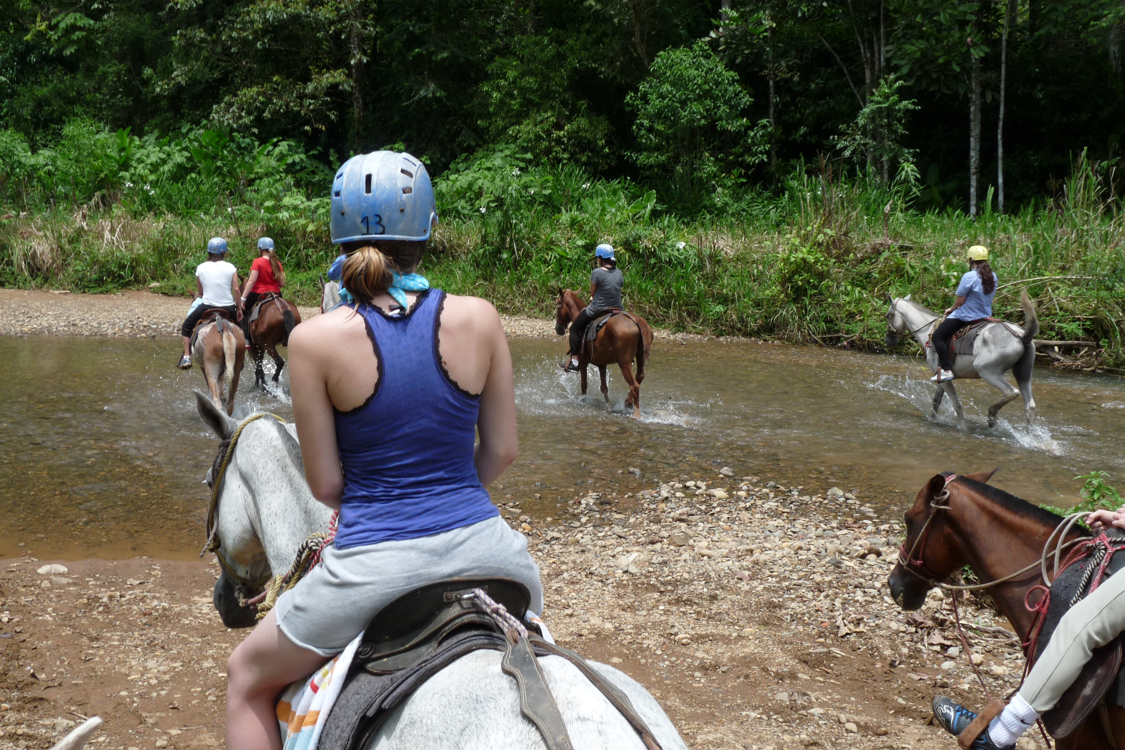 The waterfalls themselves were enchanting, in that distinctly waterfall-y way. We waded in to the deep freshwater pools and enjoyed the cool misty spray; and we spent a good time just relaxing, refreshing ourselves and taking many photos before regrouping to return to the ranch, where we were served a delicious roast chicken casado. Casado is a traditional Costa Rican platter of rice and beans with finely-chopped veggies (‘picadillo’), a choice of red meat or chicken, and fried plantain.