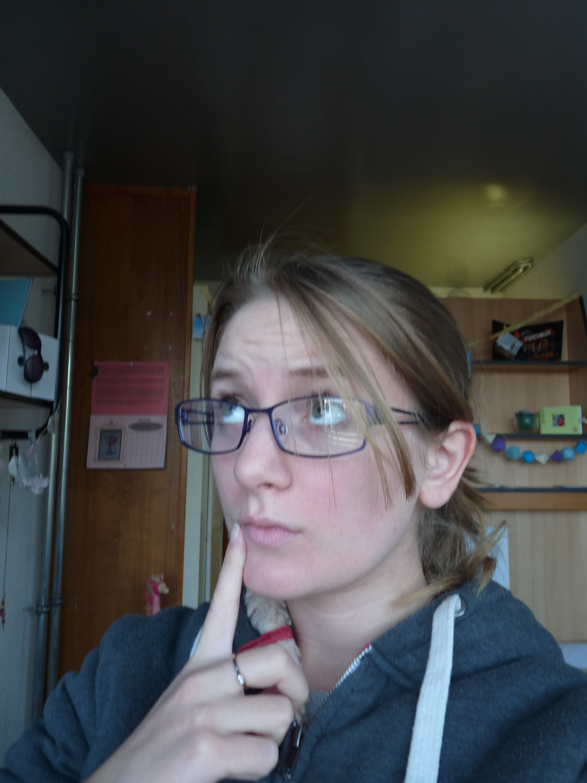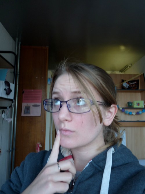 I love my big new purple-rimmed glasses! I didn’t want to add ‘mess around with contacts’ to my pre-class checklist, since I still haven’t mastered the technique of placing those finicky little plastic films on my eyeballs. I also didn’t want to be going to the optician’s every month for more lenses or fluid or what-have-you. Glasses are long-term, reliable and make me look smart! : ) Oh, and the headaches I’d been having since I gave up on the contacts have stopped now, too.