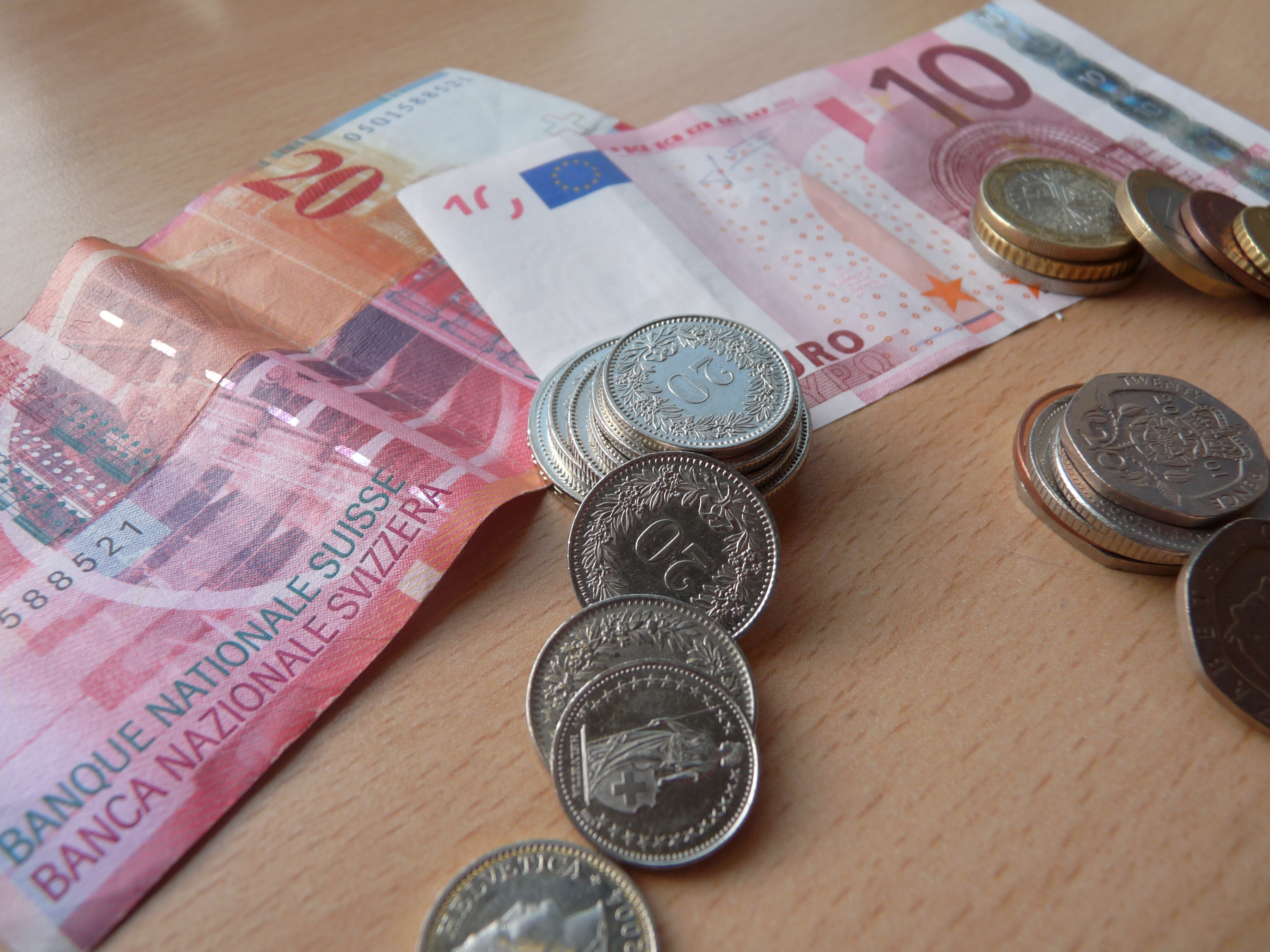 My impressive collection of moneys: Swiss Francs, Euros and British Pound Sterling. Because I'm all international like that.
