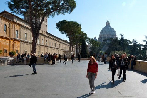 God city did make short work of my frustration though, it has to be said. It really was almost empty, and the serenity of the place was such that we shunned the 7€ entrance to the cupola and sat instead enjoying the view of, rather than from, the Basilica. The weather was so perfect, the surroundings so sublime that even the prospect of the Sistine Chapel itself had trouble moving me from the steps where we sat.