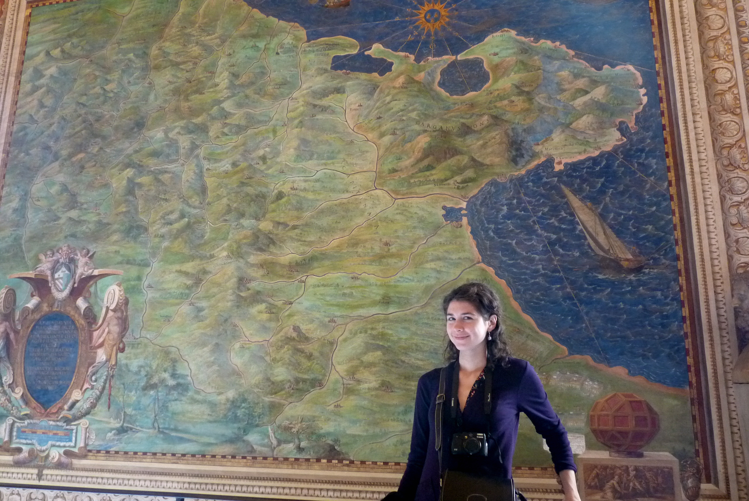 If you imagine Rome is above Nicole's head... our hostel is somewhere over to the west near the coat of arms.