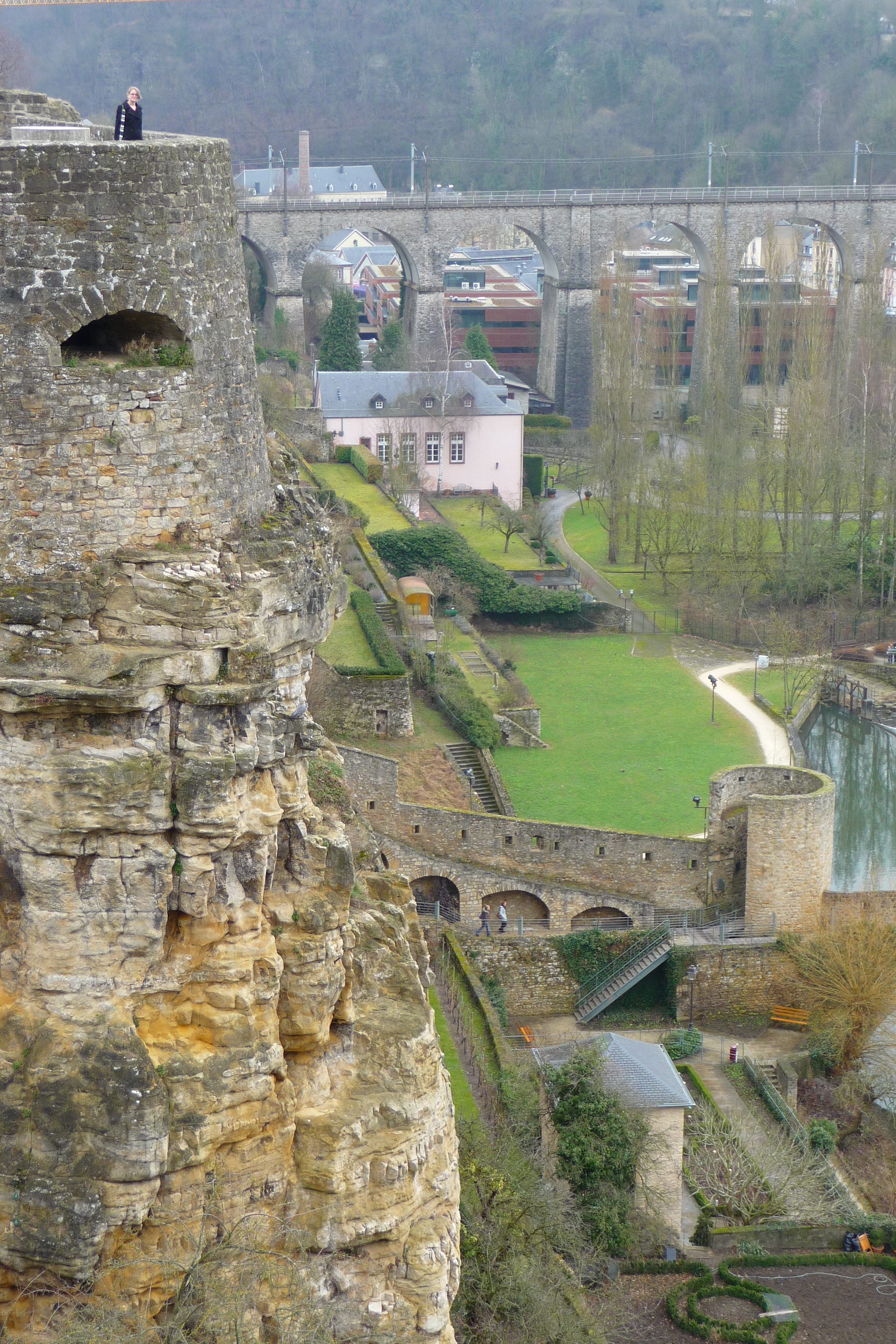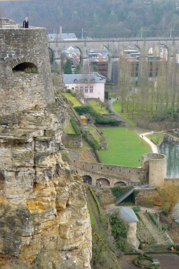 It wasn’t just the interior of the casemates that amazed me, though. Those soldiers may have worked their hands to stumps hollowing the whole thing out, but they were well rewarded: the view from that place is fascinating. The city is set out on several different levels due to its location on the edge of the Luxembourg plateau: there’s even a public service lift to take you between Haute Ville and Grund! Which isn’t all that surprising when you consider that, according to my good friend and ally Wikipedia, while the lowest part of the city is 230m (750 ft) above sea level, the highest part is a lofty 402m (1,319 ft) tall!