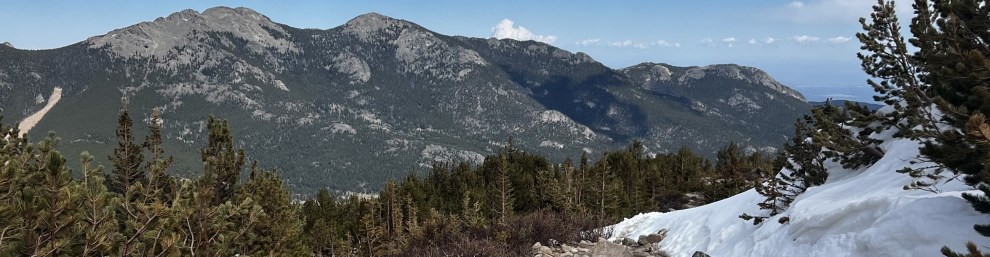 I had made it 3 (which I had turned into 4) of the 4 prescribed outward miles when I paused at a breathtaking viewpoint at a mountain pass that offered a view of the lake I’d been meant to reach. Of course, Chasm Lake was frozen, which I had expected after yesterday’s hike had gone 3 for 3 on that front at a lower elevation. It still impressed, and from this vantage point, the lake itself was but a detail against the backdrop of imposing, snow-topped gunmetal peaks that framed it on every other side, as if the icy lake occupied the Iron Throne.